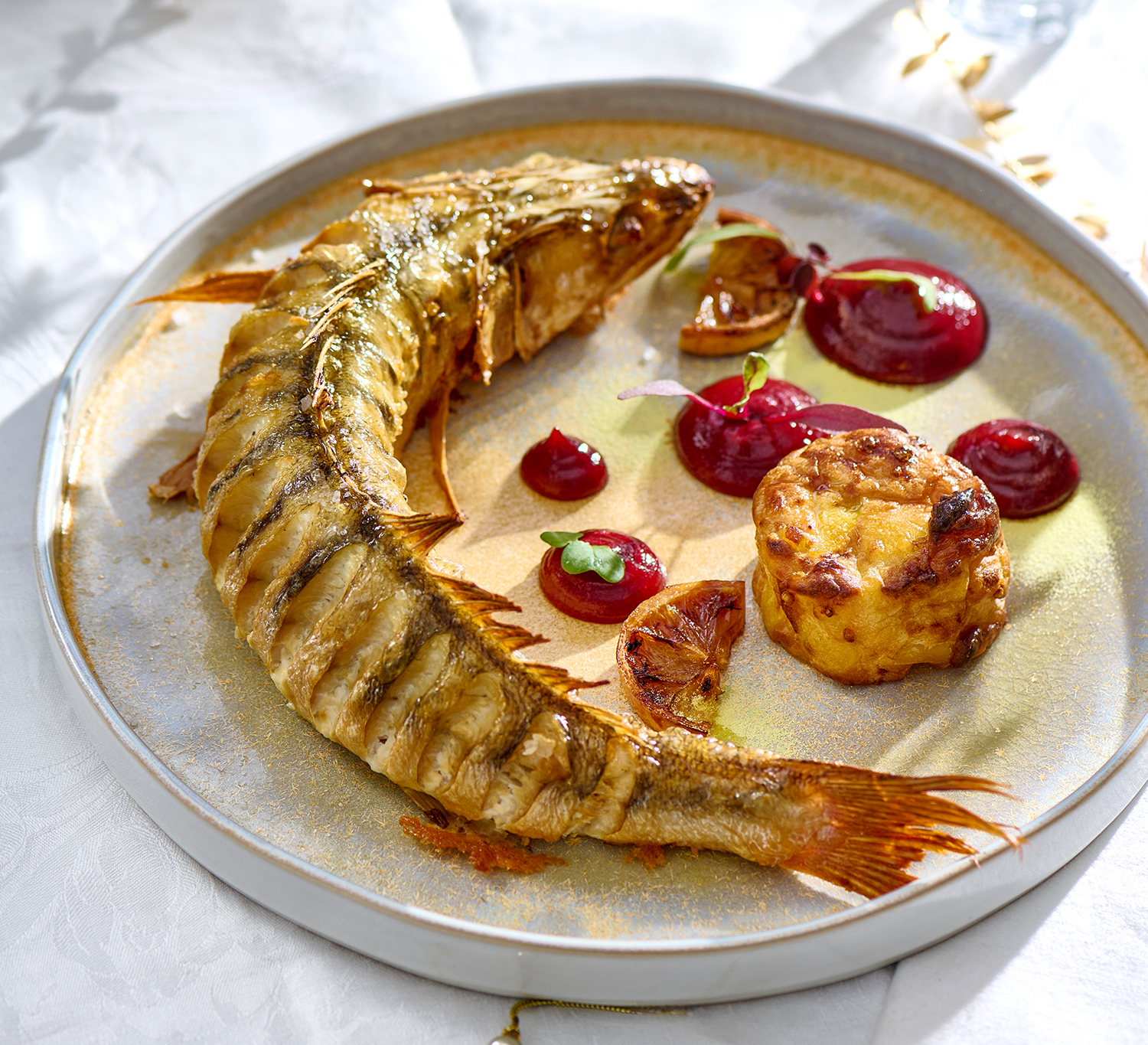 Grillezett bélszín erdei gombakrokettel és zellerpürével