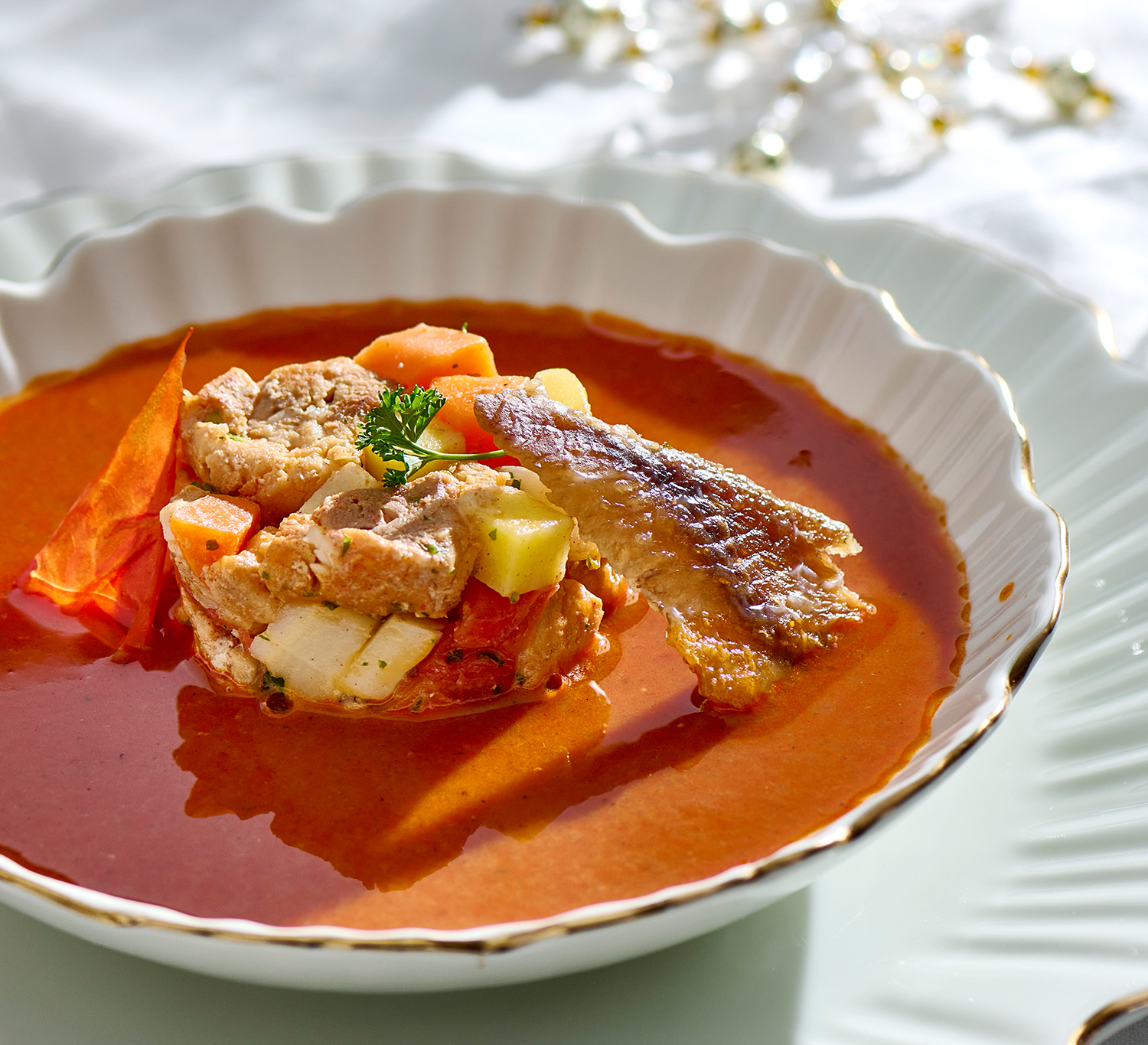 Balatonboglári halászlé alap kiváló kiindulópont egy modern, sűrűbb állagú, harcsakockákkal dúsított gulyás elkészítéséhez. Klasszikus ünnepi étel, amely nem hiányozhat a karácsonyi asztalról.